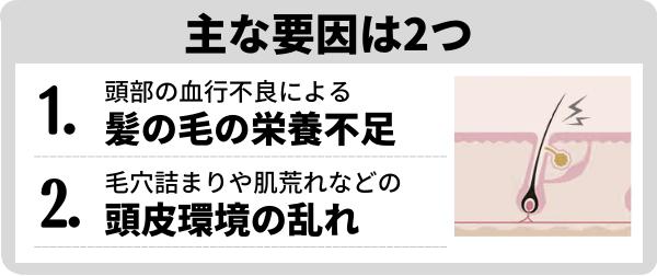 髪の成長に必要な栄養が頭皮まで届かなくなり